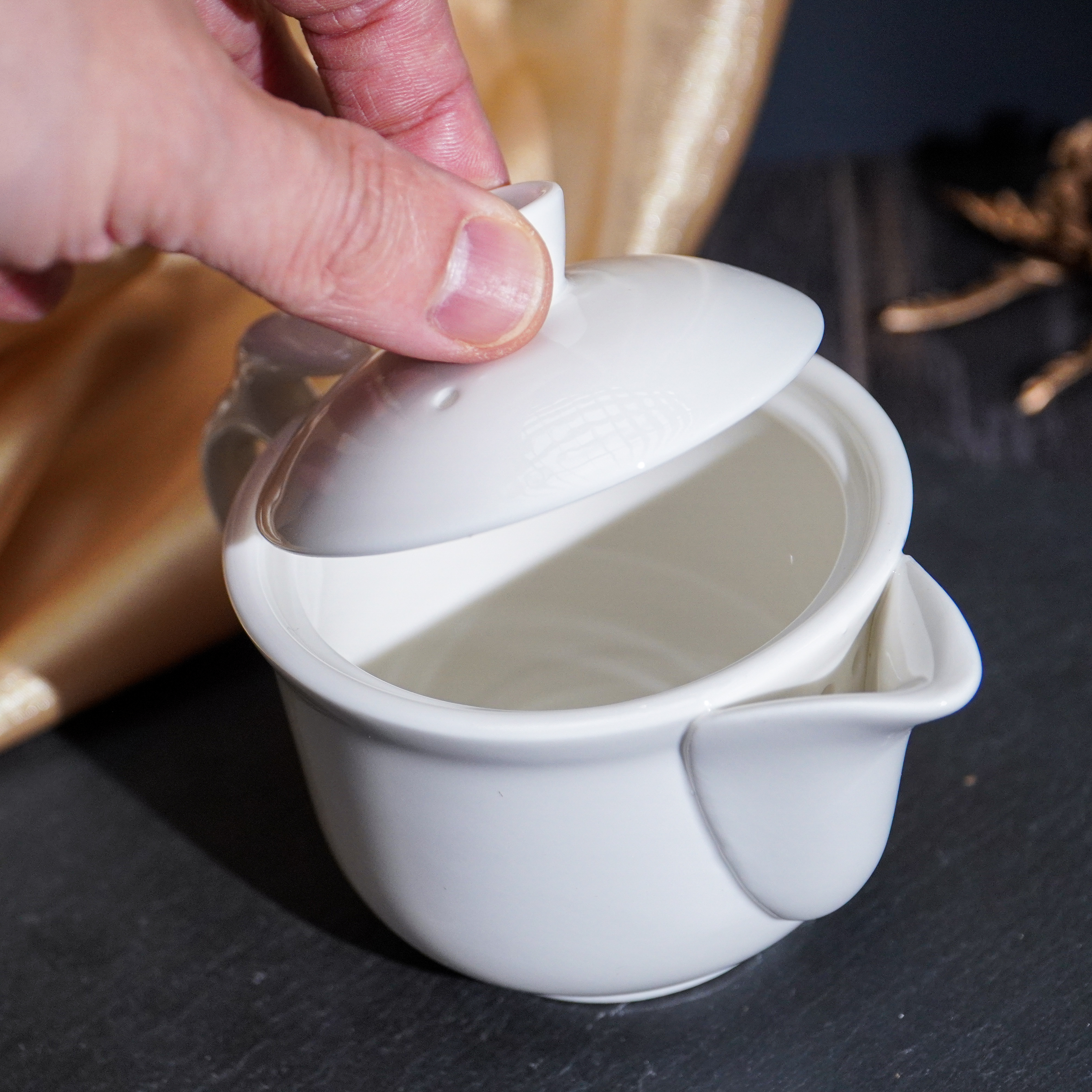 以黑色奇萊山的冷冽雲霧,醞釀一壺金黃甘醇,再以白玉側杯,映照茶湯的雅韻。